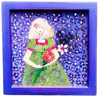 2025 Berna. Pintura e colagem sobre tecido cru 63 x 50 cm / bordado sobre tecido linho, 50 x 63 cm.