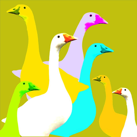 2025 Para que nossos gansos possam viver. Série de Berna. Técnica mista, 80 x 80 cm, 50 x 65 cm, também na versão impressão postal 12 x 17 cm e 14 x 14 cm.